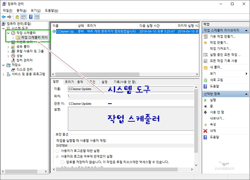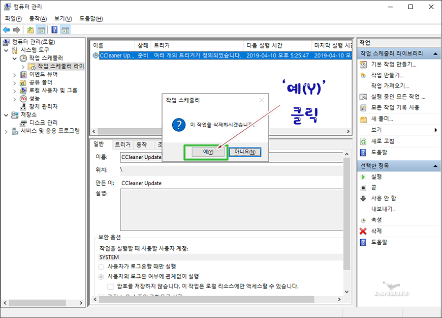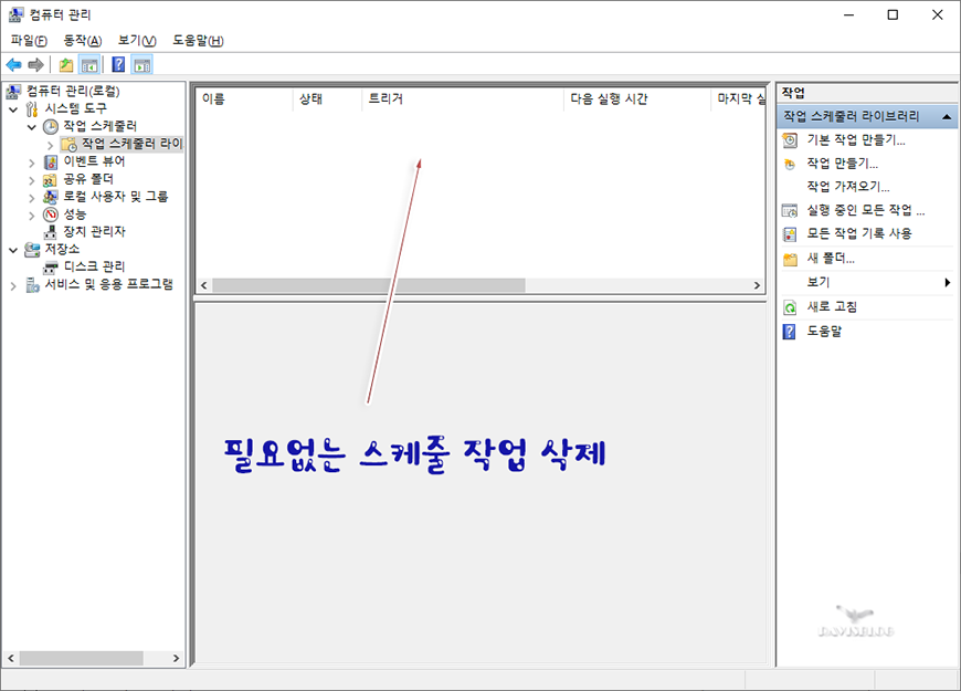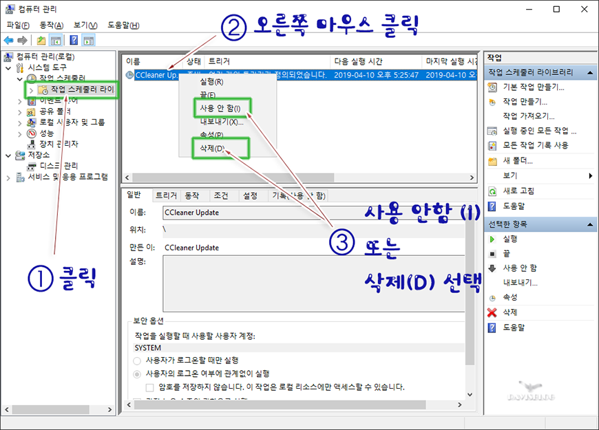 - 작업 스케줄러에 등록된 작업 사용중지 또는 삭제하기.