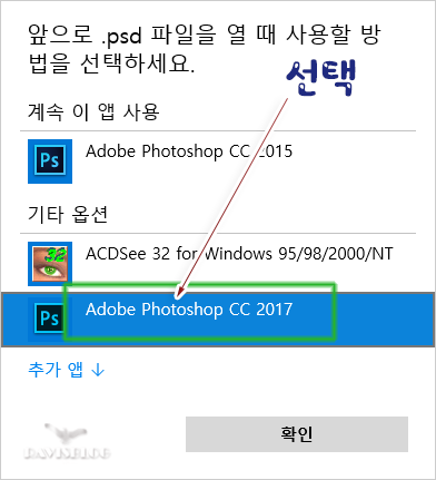 3. '기타 옵션' 항목에서 원하는 프로그램 선택 후 '확인' 버턴 클릭.(그림③)