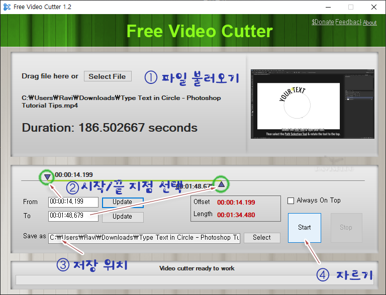 4. Start: 동영상 자르기 시작.