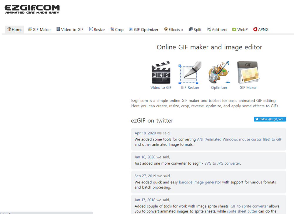 이미지 또는 동영상을 GIF 에니메이션 파일로 만들수 있게 도와주는 온라인 툴 사이트.