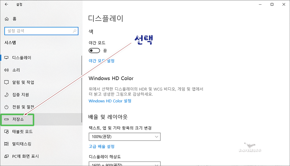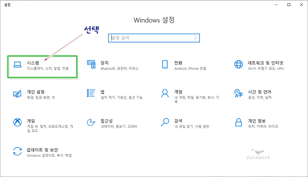 1. '설정' 창에서 '시스템' 항목 클릭.(그림①)