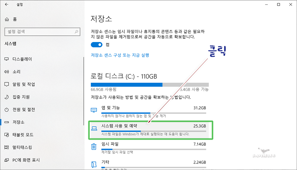 5. '예약된 저장소' 사용중이면 '예약된 저장소' 항목이 보입니다.(그림⑤)
