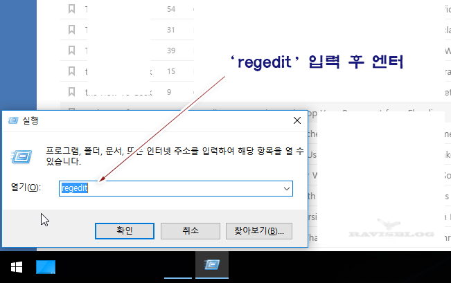 1. '레지스트리 편집기' 창을 오픈 합나디.(그림①)