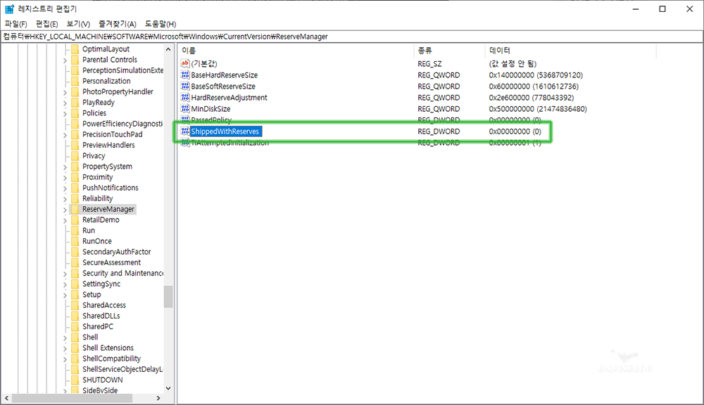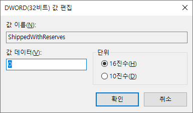 ☞ 비활성화(0)로 사용하다 다시 활성화(1)로 변경하면 '예약된 저장소' 기능은 활성화 되어 있지만