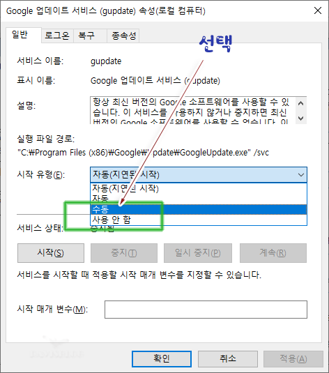 ☞ 모든 구글 업데이트 서비스 항목에 반복 적용한다.